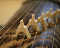 made of silk. Each string has its own bridge, shaped like Mt. Fuji, and